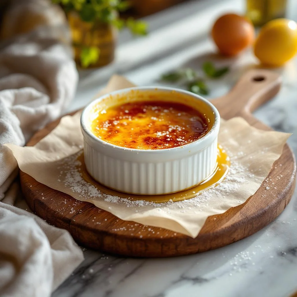 Avant de déguster, saupoudrer une fine couche de sucre sur chaque crème et caraméliser avec un chalumeau ou sous le gril du four.